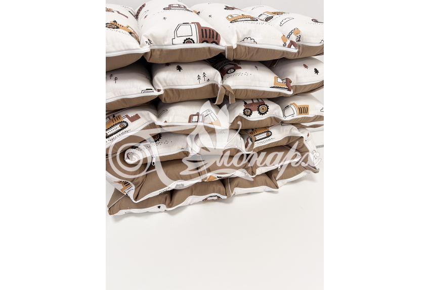 • Бортик-заборчик стеганый плотно забит синтепухом (на замочках): - 2 шт. 60х34 см / - 2 шт. 120х34 см.